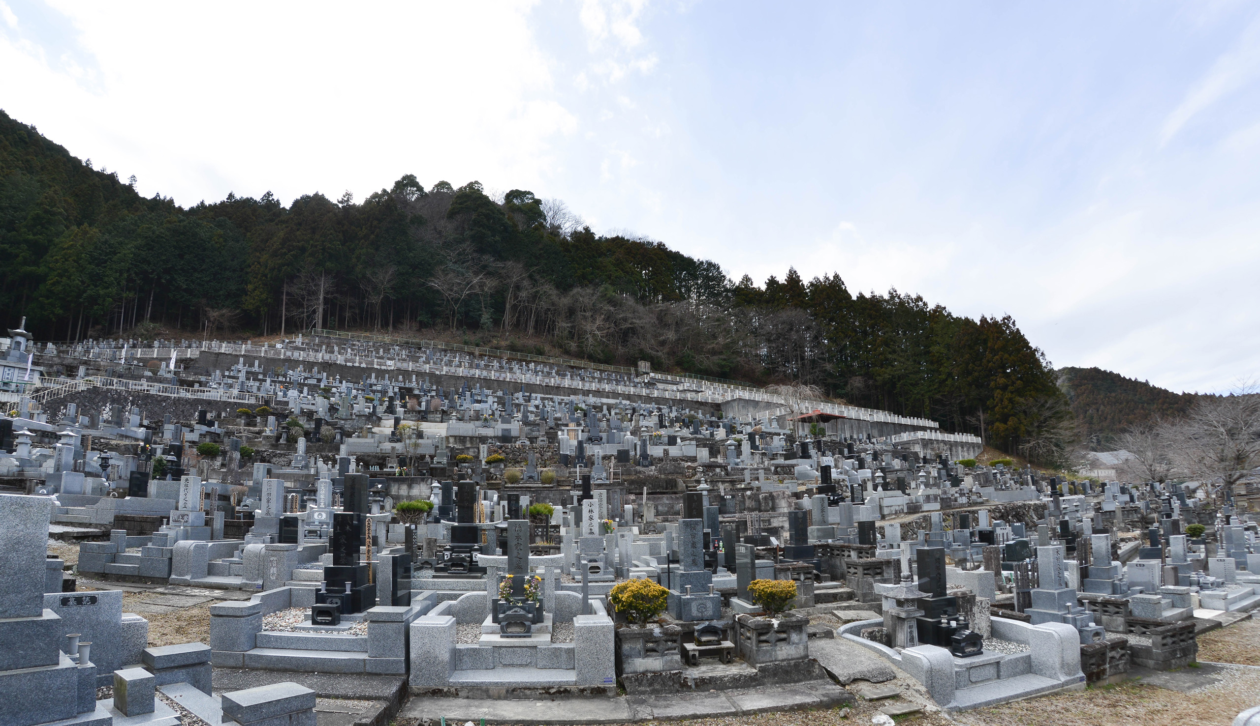 山の斜面に面していて、ゆくゆくは墓所まで歩いて行くのが大変になるとお考えになるとは思いますが、当寺院は、寺院から墓苑までカートでの送迎を行なっておりますのでご安心ください。